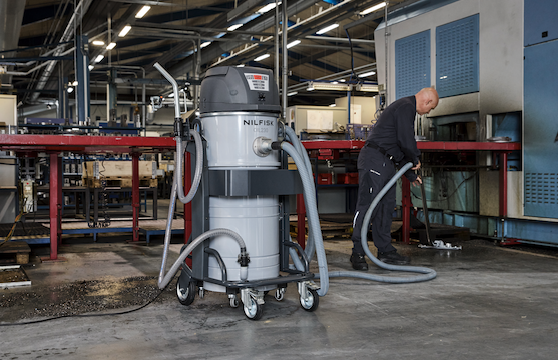Die fertigungsbegleitende Reinigung ist in der metallverarbeitenden Industrie ein Balanceakt: Wo täglich große Mengen an Spänen und Schmierstoffen entstehen, sind effiziente Abläufe gefragt, um die geforderte Produktionsperformance nicht zu gefährden. Bleiben Rückstände im Maschinensumpf, in Auffangwannen oder auf Werkstattböden zurück, drohen nicht nur Ausfallzeiten und höhere Kosten, sondern auch Risiken für Sicherheit und Qualität. Gleichzeitig ist die manuelle Reinigung oft mühsam und bindet wertvolle Arbeitszeit. In diesem anspruchsvollen Einsatzbereich sind die kompakten Nilfisk Industriesauger vom Typ OIL230 zuhause. Die Maschinen fühlen sich überall dort wohl, wo Drehautomaten, Fräs-, Schleif- und Bohrmaschinen auf Hochtouren laufen und viele Metallspäne, vermischt mit Ölen, anfallen.