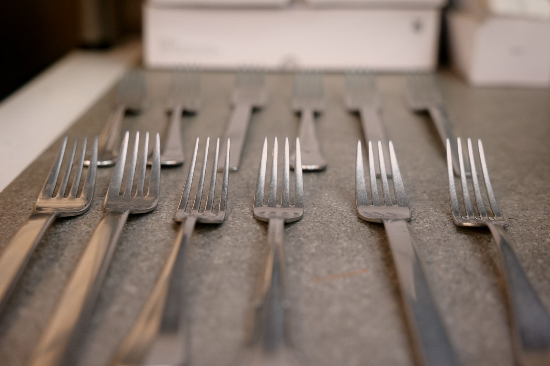Während des maschinellen Stonewashing-Verfahrens bearbeiten Schleifkörper wie kleine Feilen die Oberfläche der Besteckteile. Es entsteht ein unregelmäßiger Materialabtrag, wodurch kein Stück mehr dem anderen gleicht. Dieser imposante Vintage-Charakter wirkt insbesondere mit rustikalem Porzellan – oder als Stilbruch zu dezenteren Kollektionen.