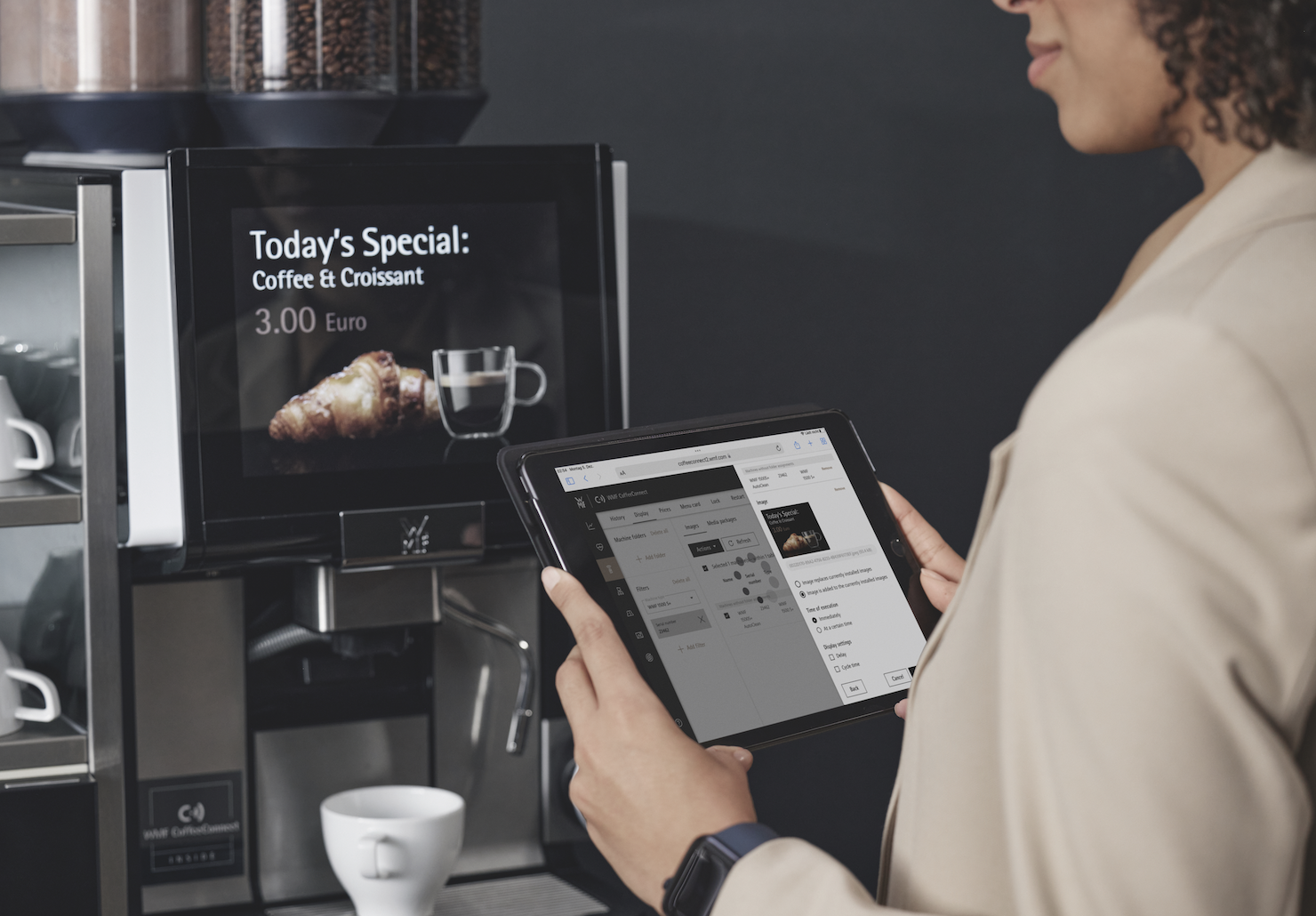 The new “WMF CoffeeConnection” digitisation team accompanies every WMF customer on their personal journey into the future of digital hospitality. WMF Professional Coffee Machines offers comprehensive advice and support in three areas: the first area establishes transparency (by displaying data) on the activities of the connected coffee machines, while the second focuses on optimising business processes and accelerating data flows through IT integration. The third area concentrates on ways to expand the customer’s business and innovative business concepts and models requiring in-depth IT interaction – such as options for payment directly at the coffee machine, integrated customer loyalty programs , unmanned stores and minimarkets or robot cafés. Together, the components, functions and interfaces of the WMF coffee machines and the digital platform “WMF CoffeeConnect” form the technological basis for all customer concepts.