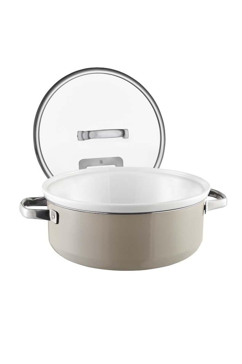 At WMF Professional, new players take the stage at the buffet: The FUSIONTEC MINERAL cookware series sets stylish accents at the hot buffet with five mineral-inspired colours and shimmering metallic surfaces, perfectly complementing the food presentation in combination with chafing dishes and bowls. But woks and braising pans have much more to offer than a beautiful look. The material consists of a special composition of more than 20 minerals and keeps food warm for an exceptionally long time. It is suitable for all types of hobs, including induction, and the high-quality glass lids allow an unobstructed view of the dishes on offer. For use at the buffet, WMF Professional offers a matching pot insert made of white porcelain. Two practical lid holders complete the portfolio.