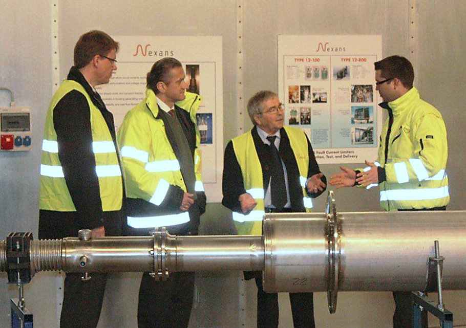 Physik-Nobelpreisträger Dr. J. Georg Bednorz überzeugt sich im Nexans-Werk Hannover von marktreifen Supraleitersystemen